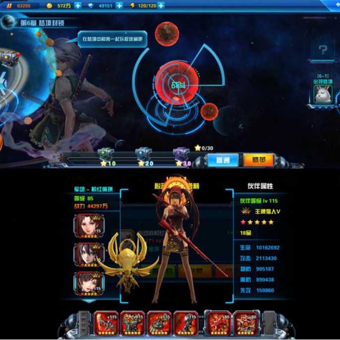 在各个瑰丽迥异的星域关卡战斗。