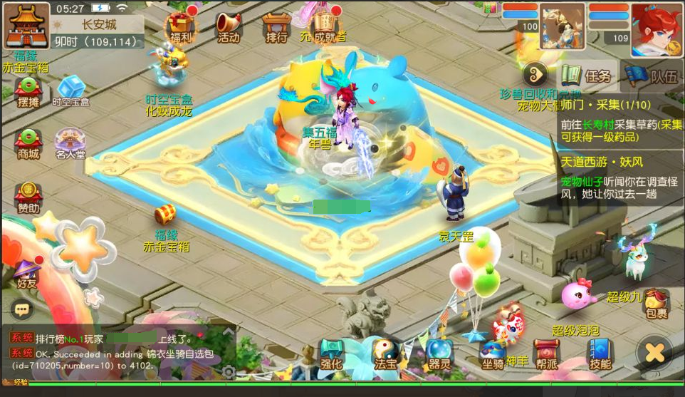 全新绮梦UI,新职业须弥海、女儿村、花果山门派法宝,自由分配礼包,珍兽领悟遗忘技能,可以合成、进阶